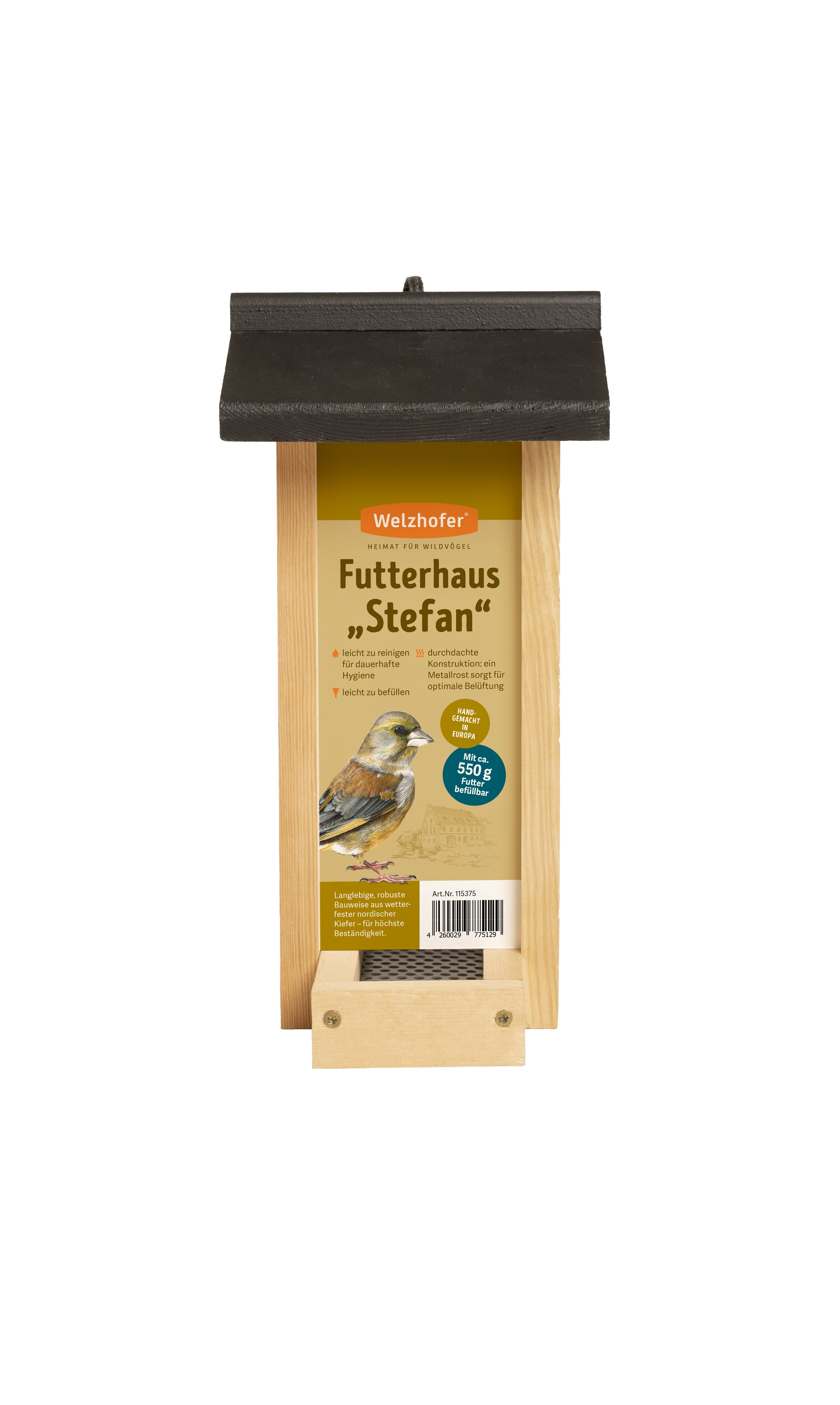 Das Vogelfutterhaus Stefan wird von vielen verschiedenen Vogelarten angeflogen und erfreut sich großer Beliebtheit bei allen Gartenvögeln.